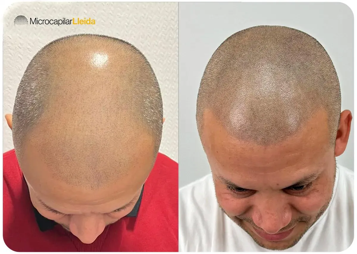 Pérdida total de cabello enfrentada con éxito mediante micropigmentación, brindando notables resultados especializados.